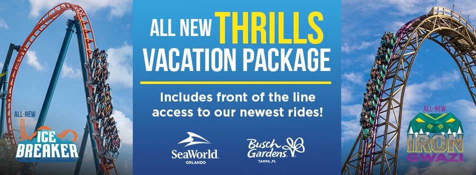 Experience front-of-the-line thrills at SeaWorld Orlando and Busch Gardens Tampa Bay when they book the all-new SeaWorld/Busch Gardens Thrills Vacation Package. Packages starting from $62* per person, per night.